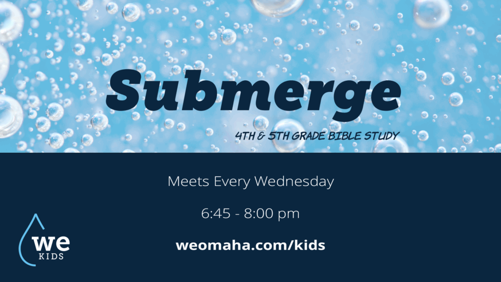 We switch things up on Wednesdays for a fun, open-formatted faith exploration. Kids get to choose their free-play time in our large activity room or in one of our breakout craft and game rooms. Kids break into small groups for lessons and discussion. And we always play some sort of zany, energizing game to bring everyone together. It’s a perfect mid-week dive for kids and a great place to bring friends. Starting this year, now both The Bible Project AND Submerge meet each week.