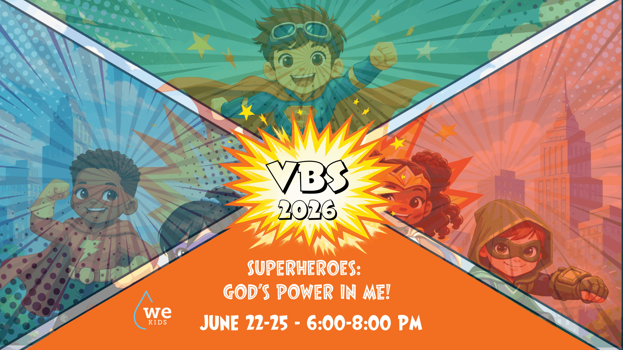 VBS 2026 is Superheroes: God’s Power in Me! This summer at the Water’s Edge, things are going to get a little super! From Moses to Jesus, no one could’ve guessed who they’d become based on how they started. Ultimately, everyone’s a hero, whether attending or volunteering, as we put on our capes, discover our powers, and learn about how God wants all of us to be His heroes—even those we might suspect the least. Join in the fun of high-energy signing and dancing, big games, exciting crafts, and loads of tasty snacks. Registration and volunteer sign-up coming soon!